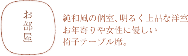 お年寄りや女性、お子様に優しく、椅子テーブル式の洋間や和室もご準備いたしております。